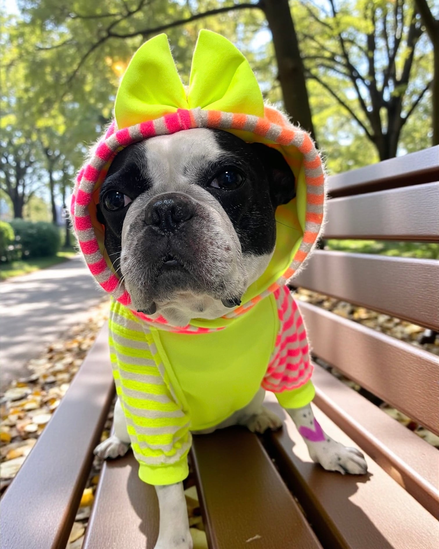 ド派手なネオンカラーのボーダーをアシメトリーに配置☝️